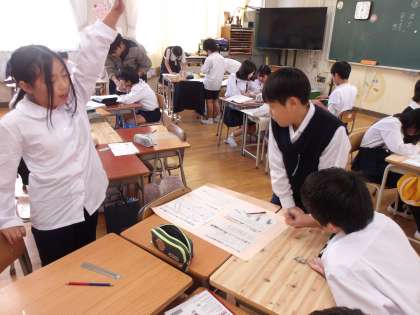 各班で「和食と洋食」「布団とベッド」などテーマを決めて、「和と洋」それぞれの良さや特徴についてまとめた新聞を作り、相手に伝わりやすい内容、表記になっているか考えていきます。