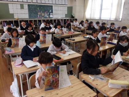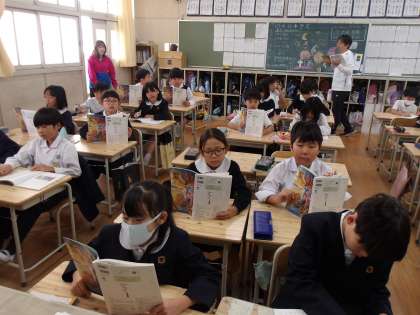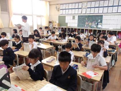 まずはみんなで教科書を読んでいきます。
