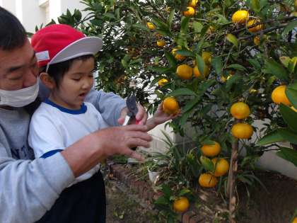 管理作業員さんにお手伝いしていただきながら、お目当ての“みかん”の実をとると、子どもたちから自然と笑顔がこぼれます!