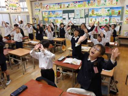 2年生が音楽の時間に「とんぼのめがね」の学習をしていました。