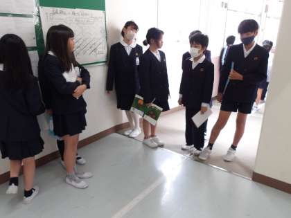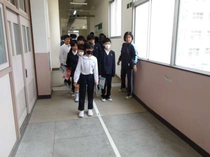 今日は各自の「歩幅」の数値を出すために、実際に10mの距離を3度歩いて歩数を調べ、各界の平均を出して自分の「歩幅」を求める学習をしました。