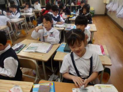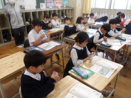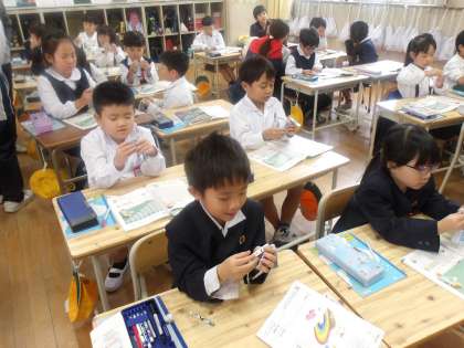 1年生は算数の時間に、くりあがりのある「たしざん」の学習をしています。