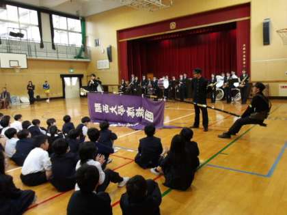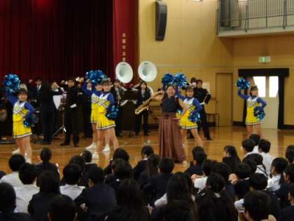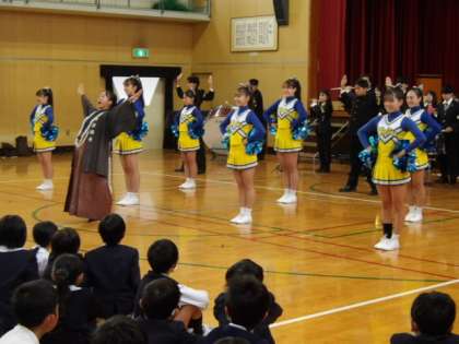 講堂内に大きく響き渡る声、重さ80kgにもなる旗を微動だにせず持ち続ける旗手の方、前に立つみなさんのまったく無駄のない動き、子どもたちの心に響く吹奏楽の音色、バトン・チアリーダーの方々の華麗な応援ととびきりの笑顔…。