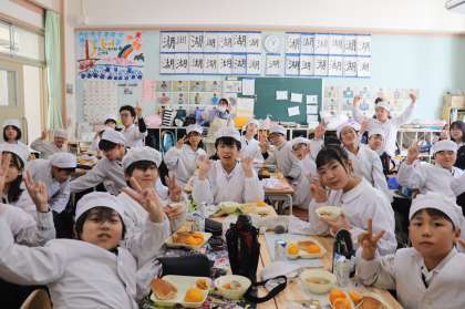 今日の給食時の様子は、元気いっぱいの6年生の写真です。