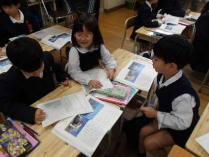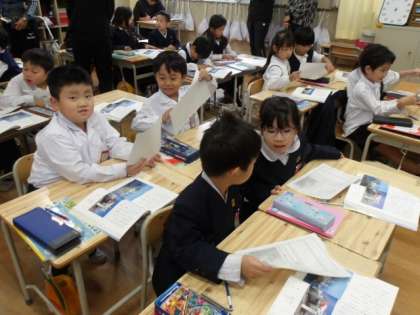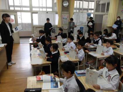 今日の5時間目は、1年生の教室で国語の研究授業が行われました。