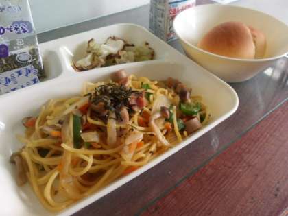 子どもたちに人気のスパゲッティですが、今日は和風味で登場です。