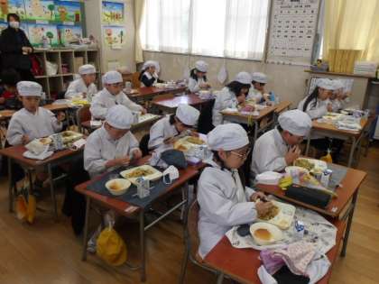今日の給食時の様子は、2年生の写真を使っています。