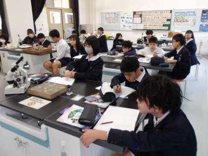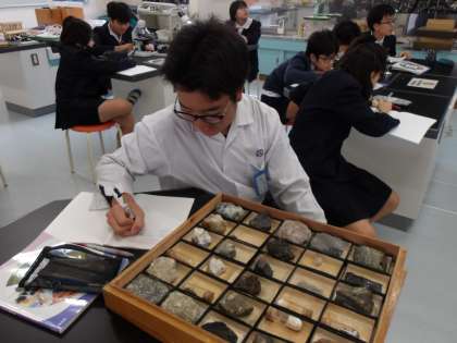 私たちが生活をしている地面の下を調べるとどんなことがわかるのか、さまざまな鉱物サンプルも活用しながら学習していきます。