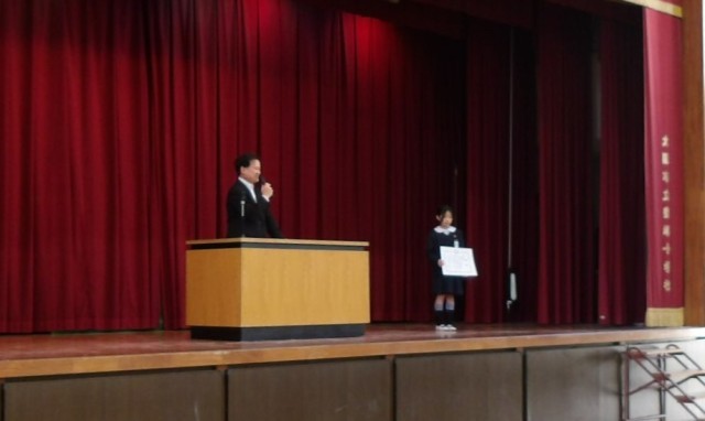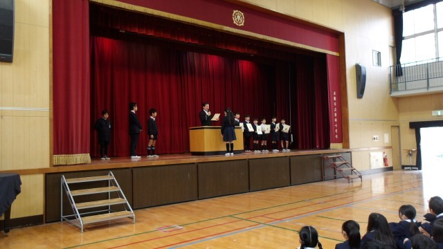 今日の朝会では、ギャラリー表彰、読書感想文の表彰、防火・防災図画の表彰と、たくさんの表彰がありました。