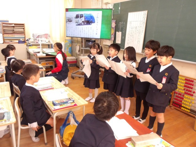 さまざまな役割をはたす「はたらく自動車」をテーマに取り上げ、各班ごとにその自動車の役目や車のつくりなどを文章にしてまとめていきます。