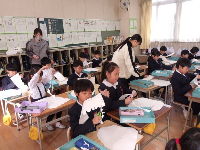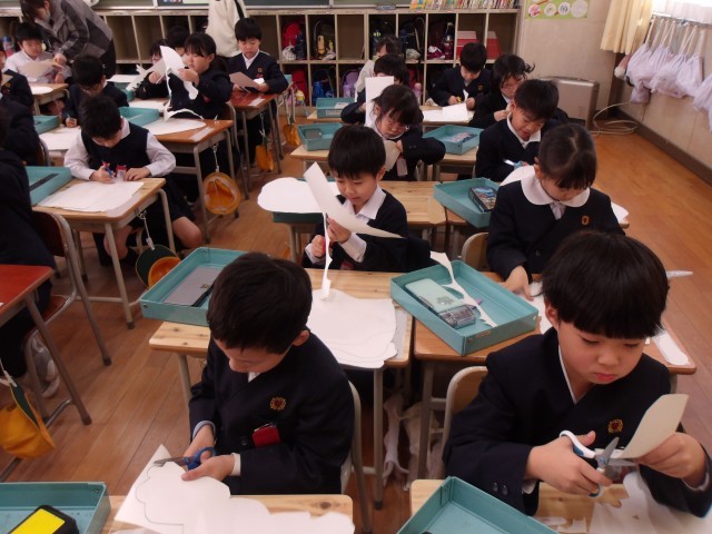 1年生は図画工作の時間に「かみはんが」の制作が始まりました。