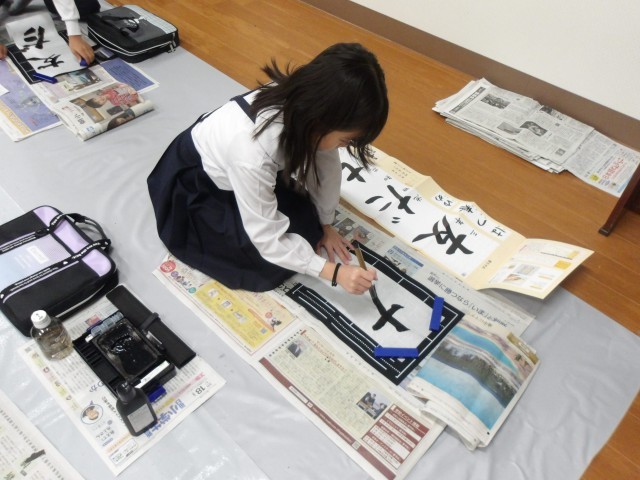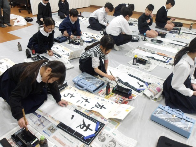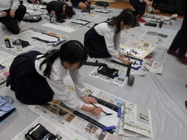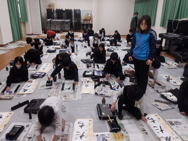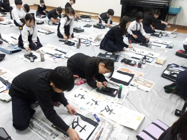 3年生以上の学年で行っている毛筆での書き初め、今日は3年生と6年生が行いました。