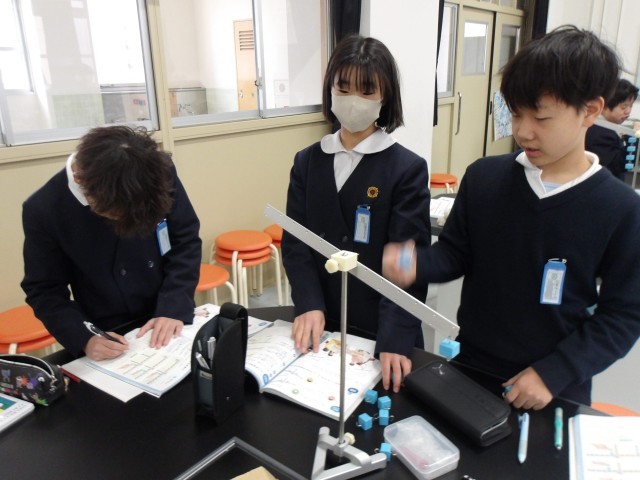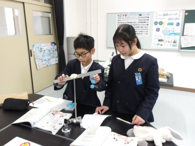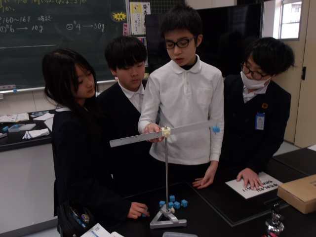 今日は実験用のてこを使って、おもりを吊り下げた時にうでの傾き方にはどのような法則性があるのかを調べていきました。