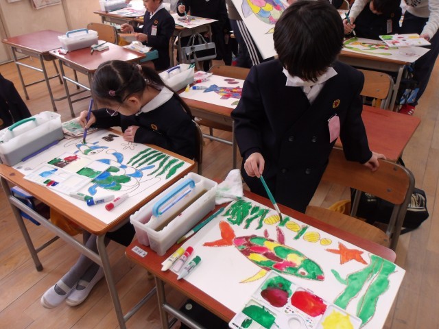 1月27日「にじいろのさかな」《図画工作》【2年】