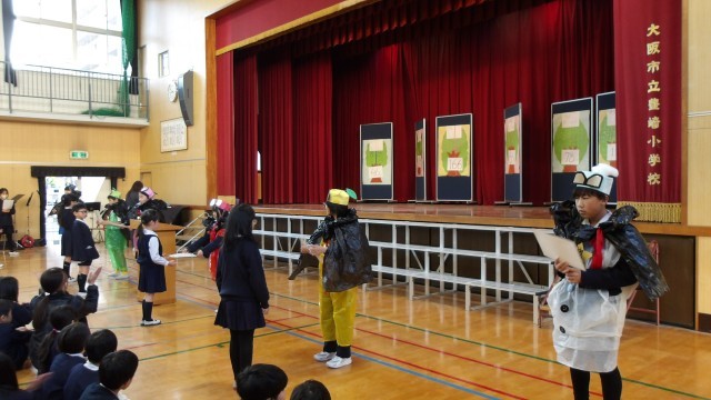 最後にあいさつレンジャーが登場し、1月のあいさつ運動週間の発表を行いました。