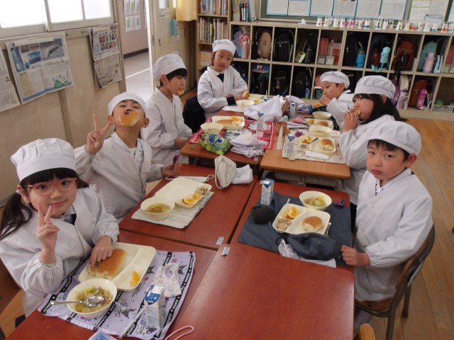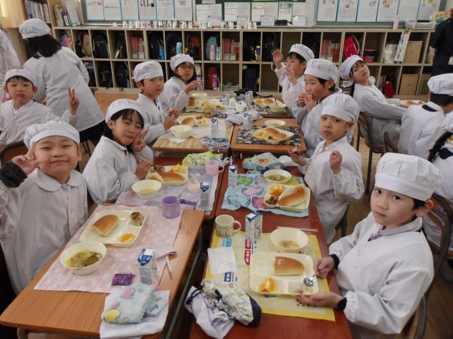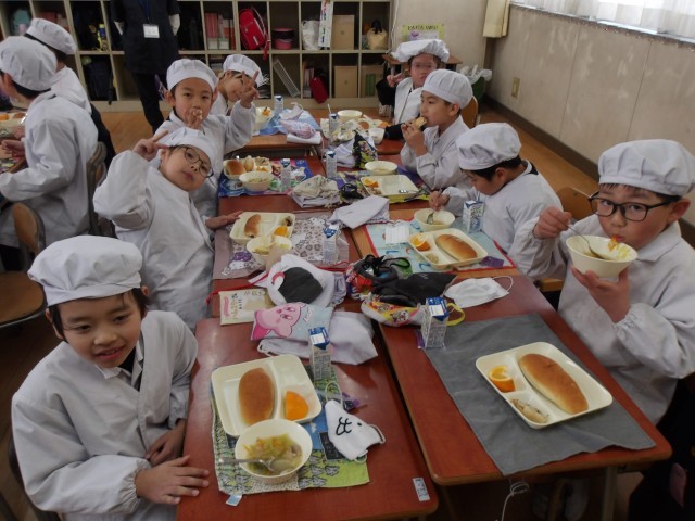 今日の給食時の様子は、2年生の写真を使っています。