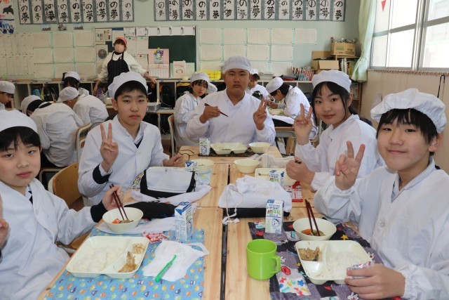 今日の給食の様子は、6年生の写真を使っています。