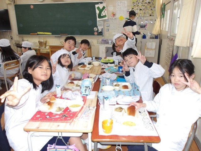 「豚肉のカレー風味焼き」は4時間目ごろからカレーの香ばしい香りが校内に漂ってきて、子どもたちも「むっちゃ、いい匂い!」と、今日の給食を楽しみにしていました。