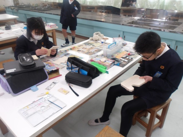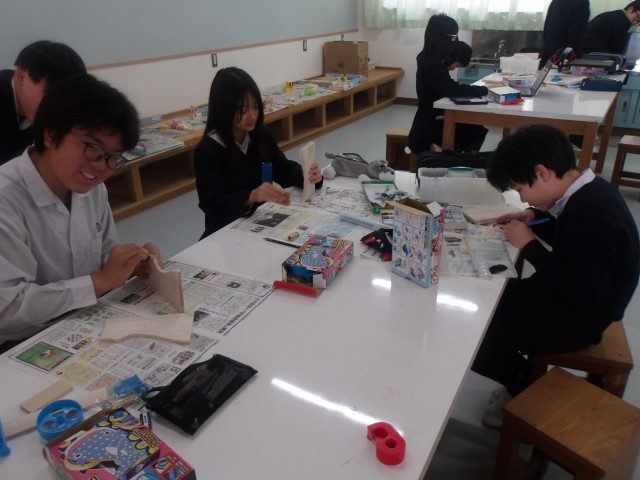 6年生が卒業制作として、図画工作の時間に行っている「テープカッターづくり」。