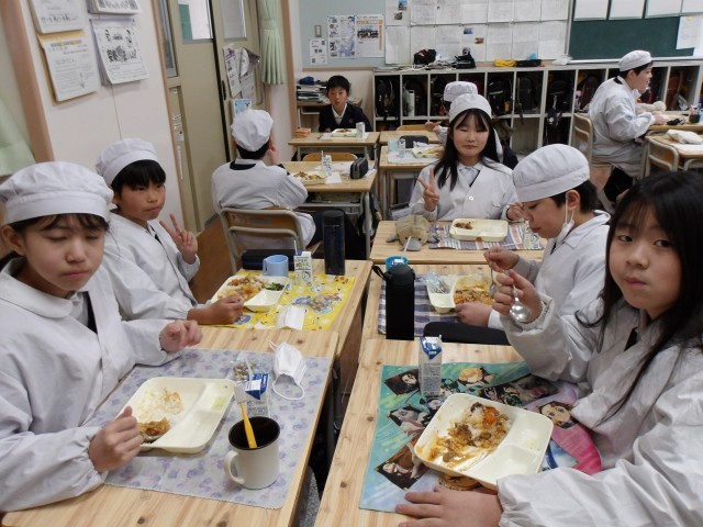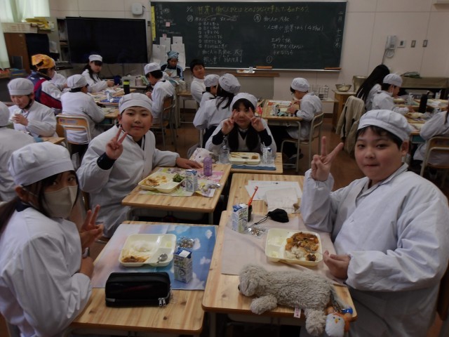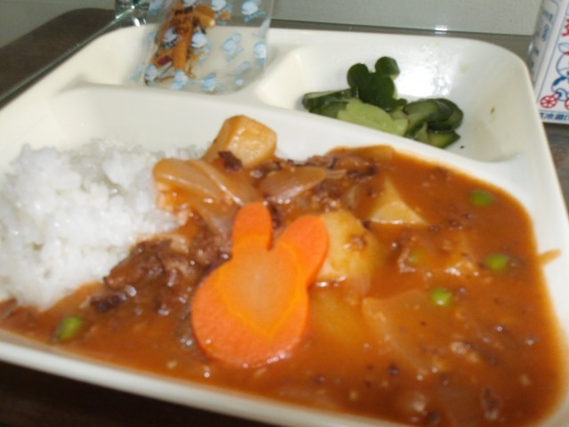 今日はハヤシライスに“ラッキーにんじん”を、バジル風味サラダに“ラッキーきゅうり”を給食調理員さんが入れてくださっています!