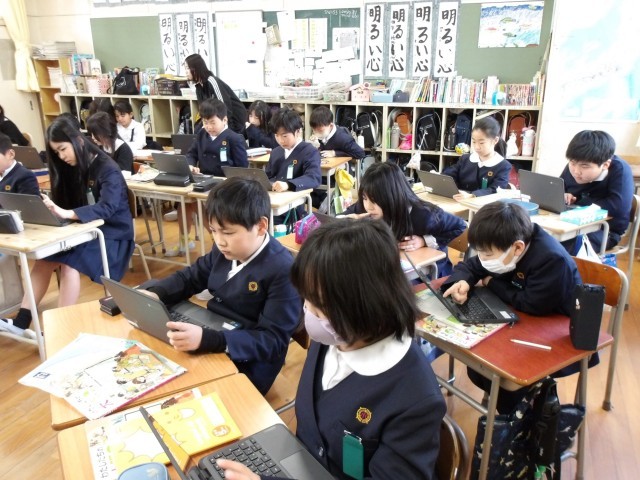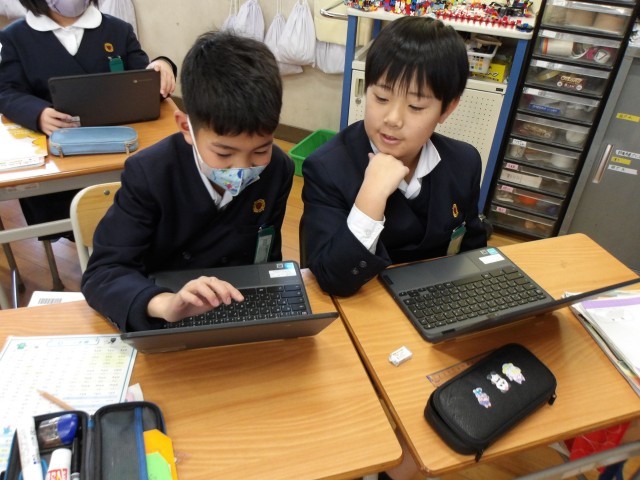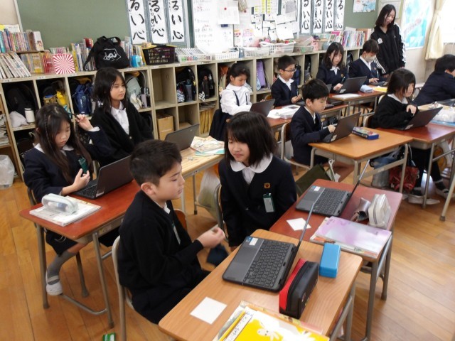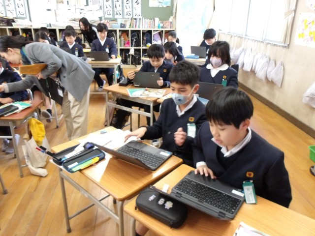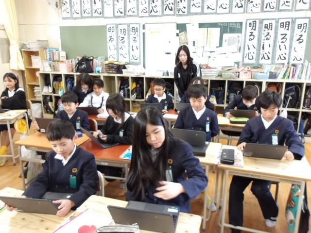 今日は4年生が、ICTサポートの支援員さんにご協力いただきながら、おうちでの宿題を想定してタブレット操作の練習をしました。
