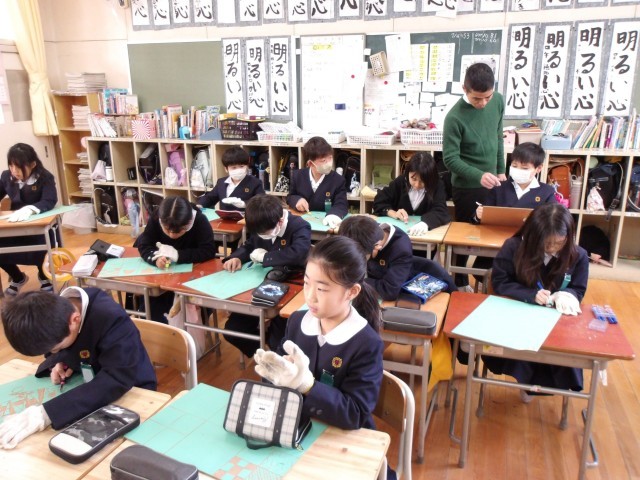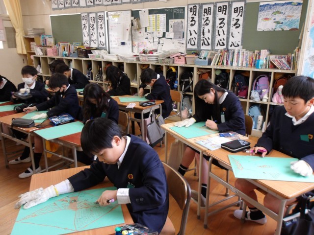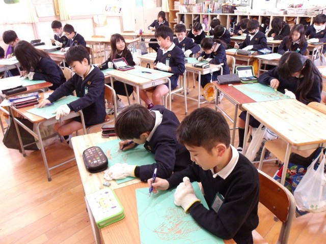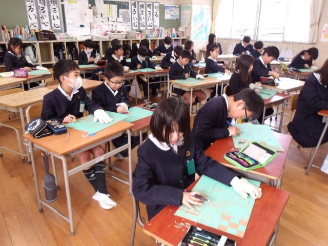 4年生は図画工作の時間に「木版画」の学習をしています。