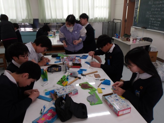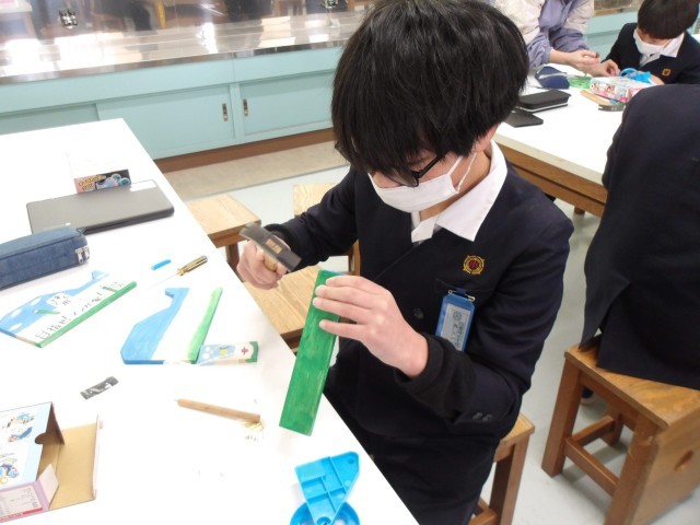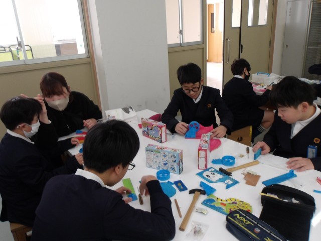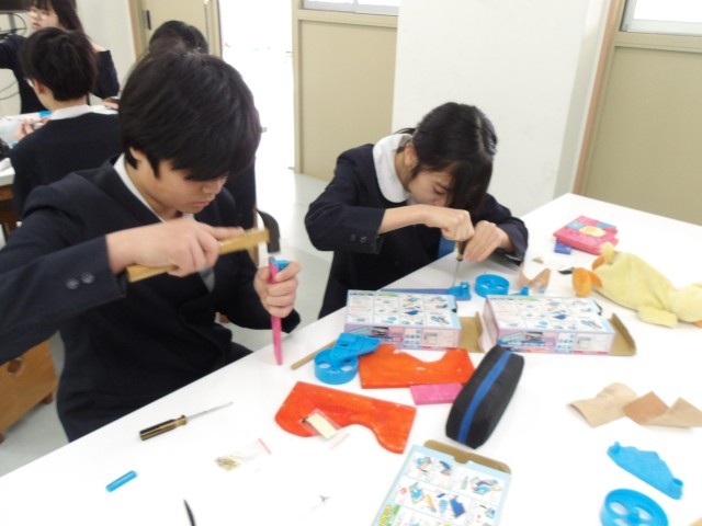 図画工作の時間に“テープカッターづくり”を卒業制作として行っている6年生。