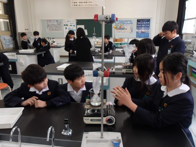 今日は、水を熱したときに発生する“あわ”の正体を調べる実験を行いました。