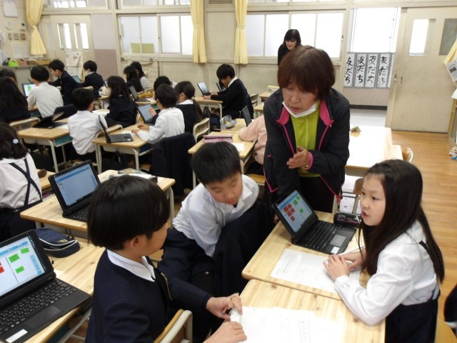 今日はこれまで学習してきたことをふまえ、目の不自由な方が暮らしやすい豊崎の町にしていくには、どんなことをしていけばよいかみんなで考えました。