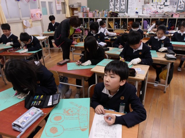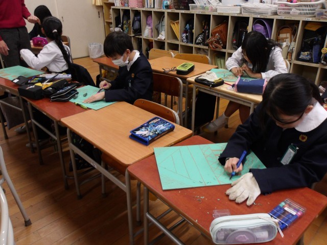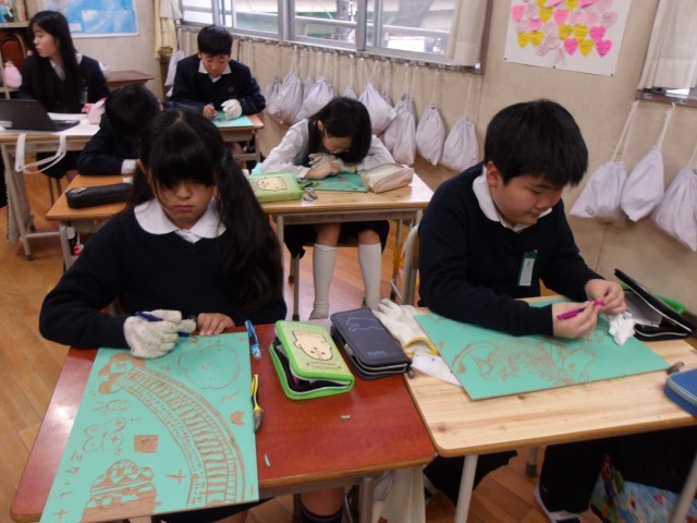 制作が進むにつれ、子どもたちは彫刻刀の扱い方、使い方がとても上手になってきました。