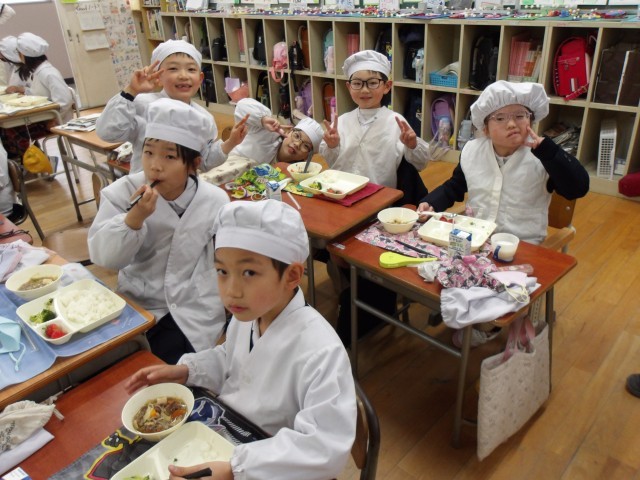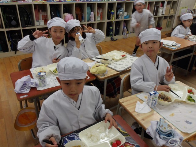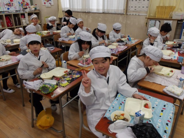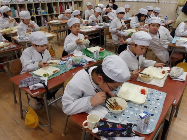 今日の給食時の様子は、2年生の写真を使っています。