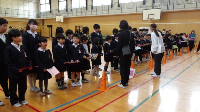 これまで各学年で練習を重ねてきましたが、今日は1年生から5年生までが一同に会し、全体の流れを確認しました。リハーサルとはいえ、体育館には心地よい緊張感が漂っていました。どの学年も「6年生に喜んでもらいたい」という思いが表情から伝わってきます。
