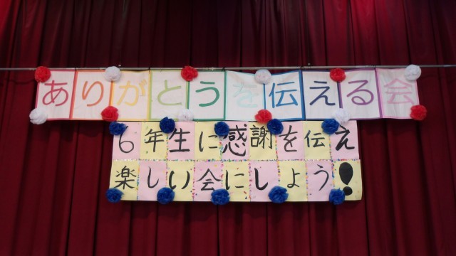 体育館にて「6年生にありがとうを伝える会」のリハーサルを行いました。