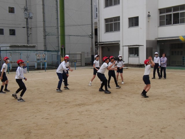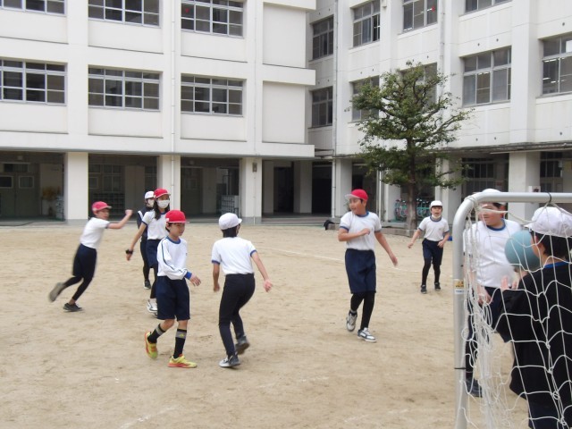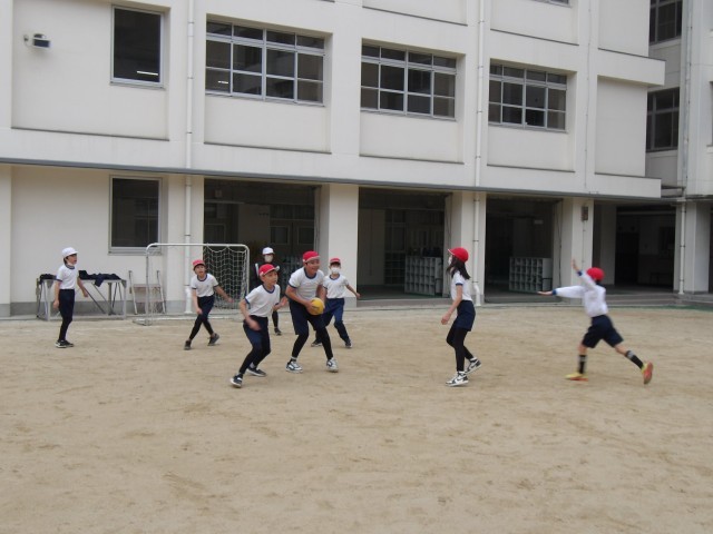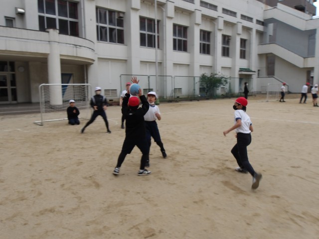 5年生は体育の時間にハンドボールの学習をしています。