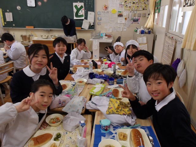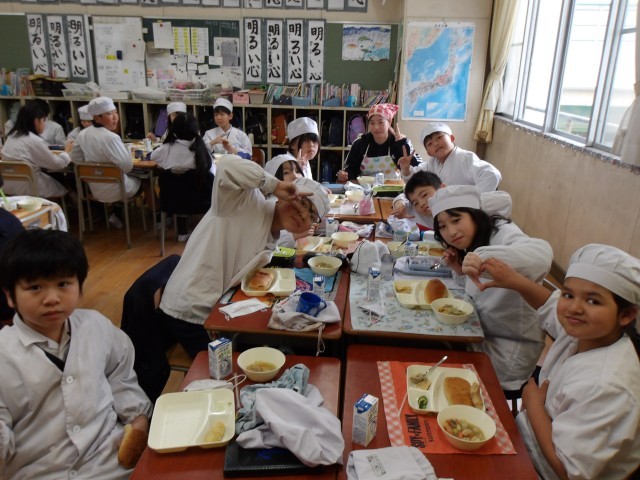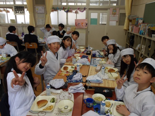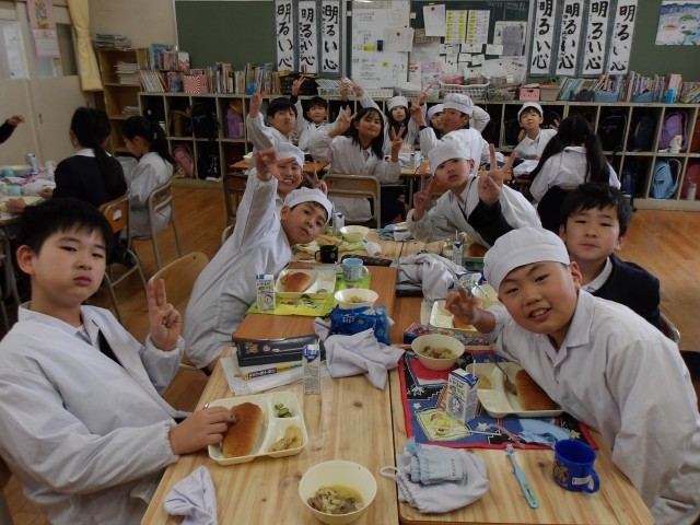 今日の給食時の様子は、4年生の写真を使っています。