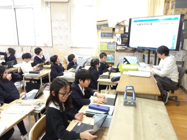 社会科の時間に、大阪市の今と昔について学習してきた3年生。