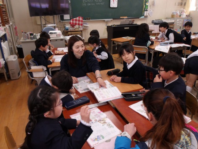班のメンバーからは「ねこ!」や「ライオン!」といったいろいろな動物の名前があがり、その動物の特徴をつかんだ歌詞をみんなで考え、とっても楽しい授業となりました!