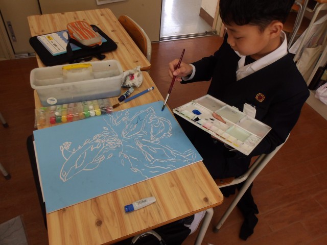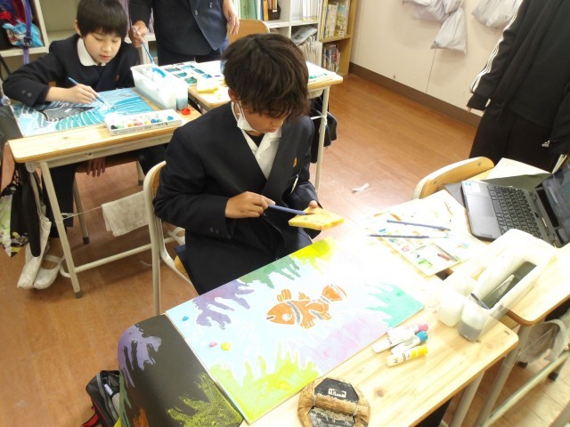高学年は図画工作の時間、各学年で木版画の学習がすすんでいます。