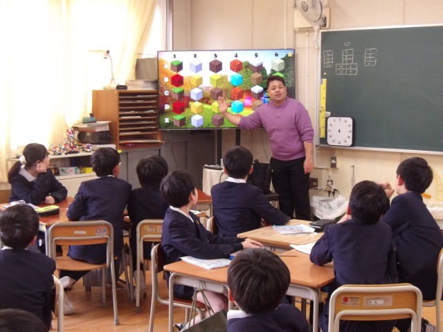 4年生の授業でも、これまで学習してきたセンテンスを使った英会話を、ゲーム形式で確認できる楽しい授業が行われており、子どもたちは大盛り上がりでした!