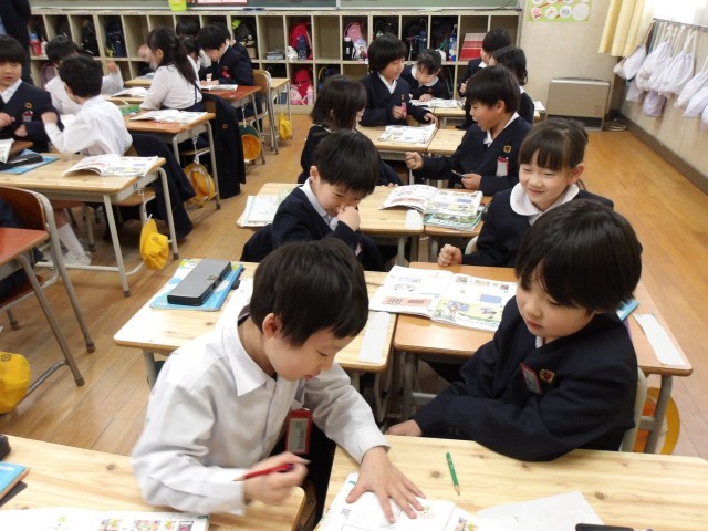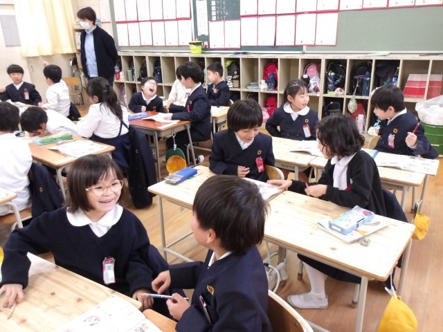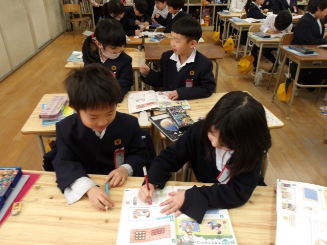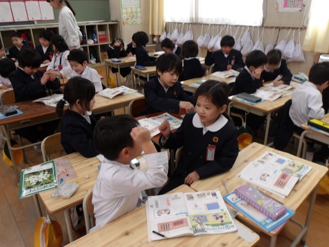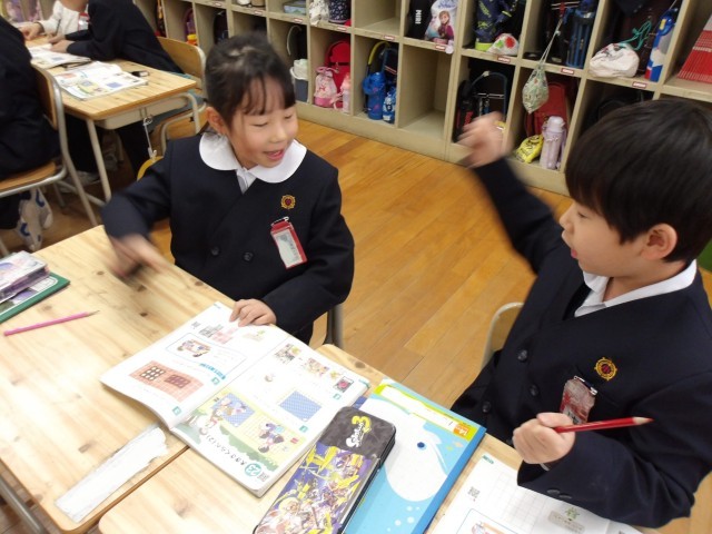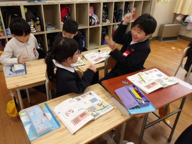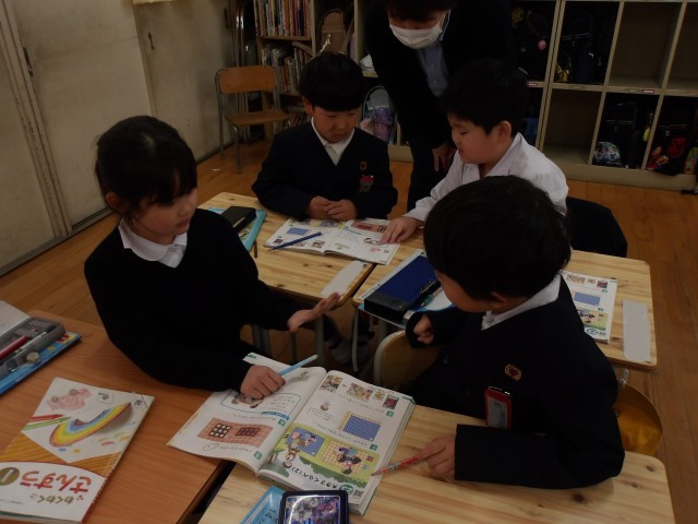 授業の最後には、教科書に載っている“ばしょとりゲーム”をみんなでして、楽しく活動をしながら「大きさくらべ」の学習を終えました!