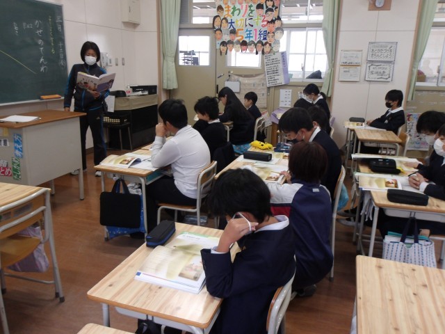 5年生が道徳の時間に「かぜのでんわ」というお話を学習していました。