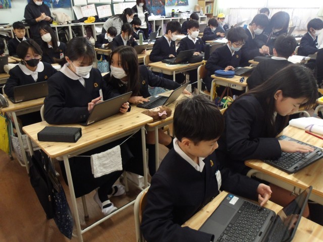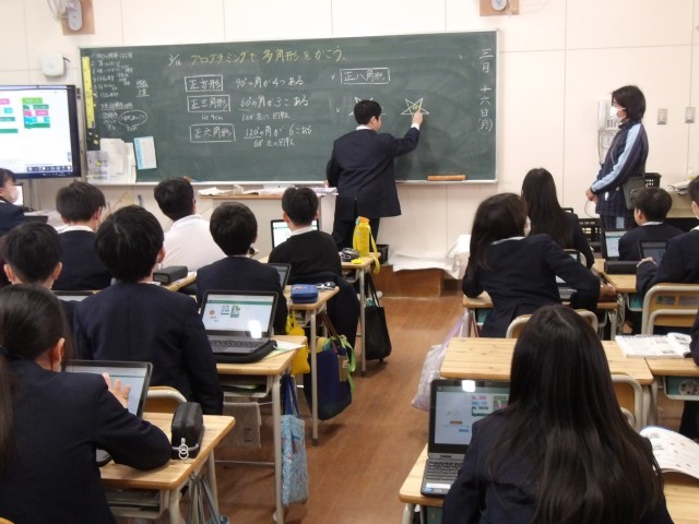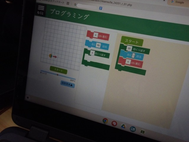 5年生が算数の時間にプログラミング学習に取り組んでいました。