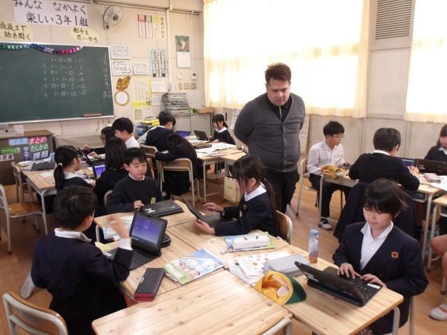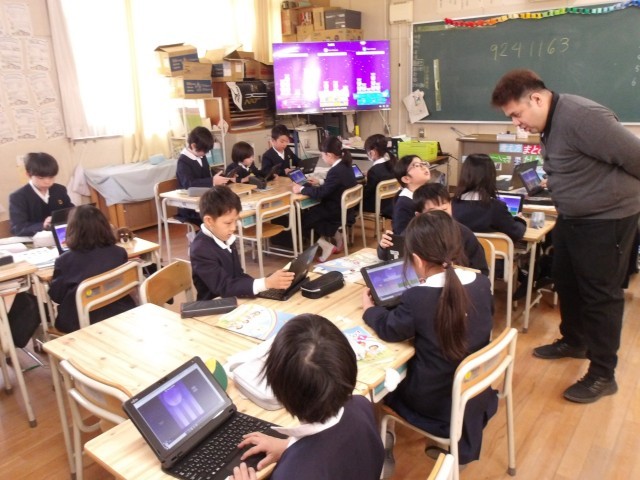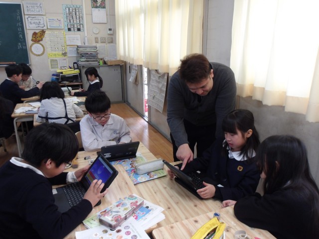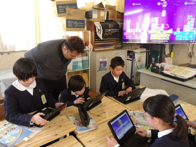 今日は今年度最終となるC-NETの先生による外国語、外国語活動の授業が、3年生から6年生の教室で行われました。