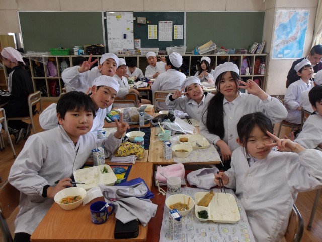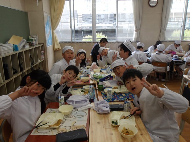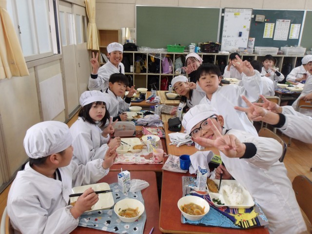 今日の給食時の様子は、4年生の写真を使っています。