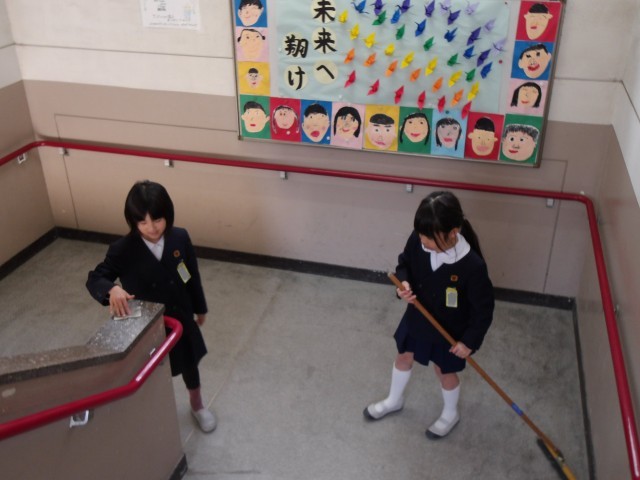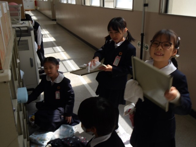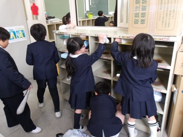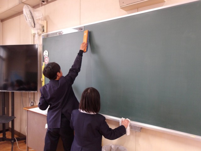 4月から気持ちよく教室を使ってもらうため、感謝の気持ちを込めて教室や校内をきれいにしていきます。