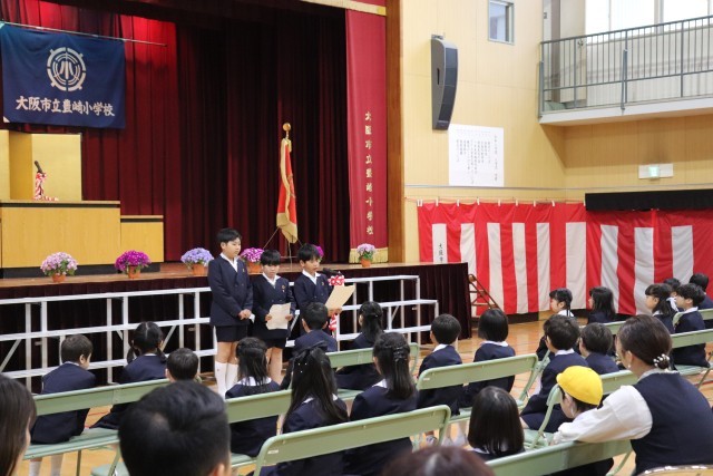 本日、多くの地域・保護者・教職員方々に見守られ、温かい雰囲気で「令和8年度豊崎小学校入学式」が挙行されました。緊張した表情で入場してきた1年生でしたが、式が始まると、笑顔がはじけ、すばらしい小学校生活のスタートがきれました。6年生代表児童の歓迎の言葉に、2年生によるお迎えの演技も、1年生の子どもたちや会場の皆さんに感動を与えてくれました。1年生のみなさん、明日から元気に登校してきてください。みんな、楽しみに待っています。