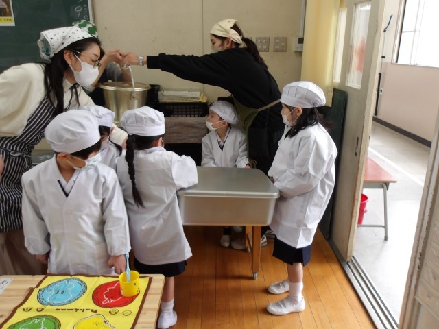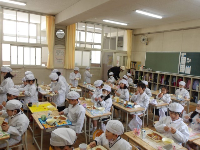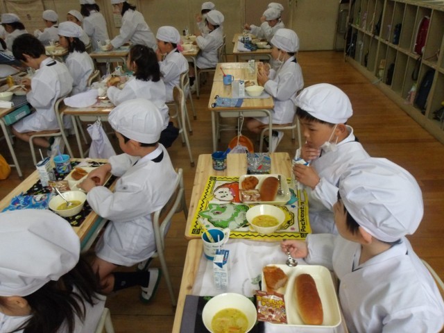 今日から給食が始まりました。1年生は、初めての給食です。そして、初めての給食当番です。給食の時間の過ごし方や、準備の仕方、そして、大切なあいさつなど、たくさん教えてもらいました。うまくできたかな?「おいしい給食、いただきます!」