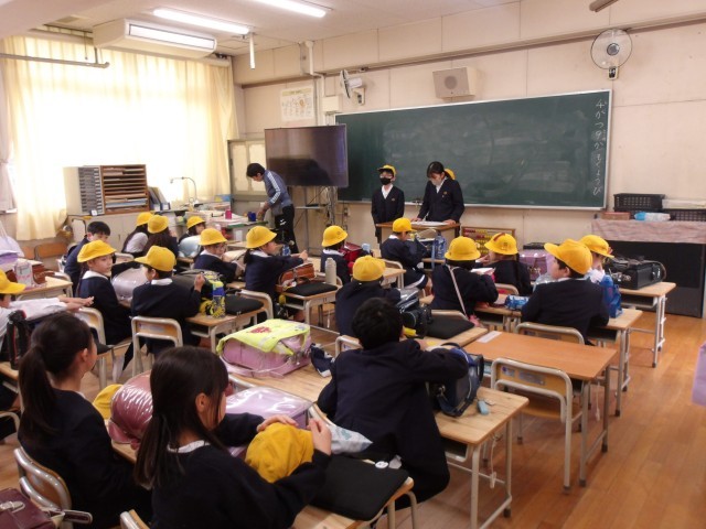 昨日、本年度最初の地域別児童会と集団下校が行われました。6年生が1年生を迎えに行き、各地域の教室で、安全についての話や、担当児童の確認を済ませ、安全に気を付けて集団下校を行いました。