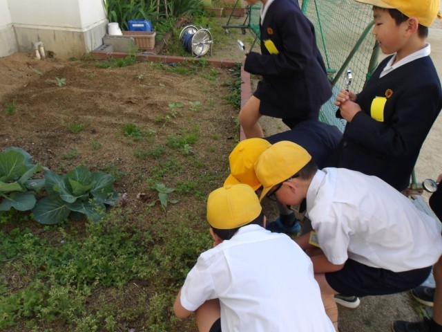 3年理科、「春の生き物」の学習の様子です。今日は、虫メガネをもって、観察に出ました。春の風を感じながら、春探しに夢中になりました。