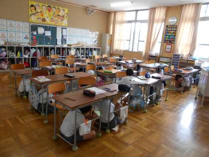 9月5日(金)大阪880万人訓練に合わせて、各教室でも自分の身を守る行動の訓練を行いました。どの児童も真剣に取り組むことができていました。